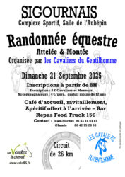 L’ Association Les Cavaliers du Gentilhomme organise le rallye équestre de Sigournais au départ du Complexe Sportif.
